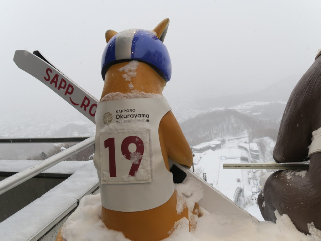 le quatuor enneigé au tremplin de saut (Okurayama, Sapporo, île d’Hokkaido)