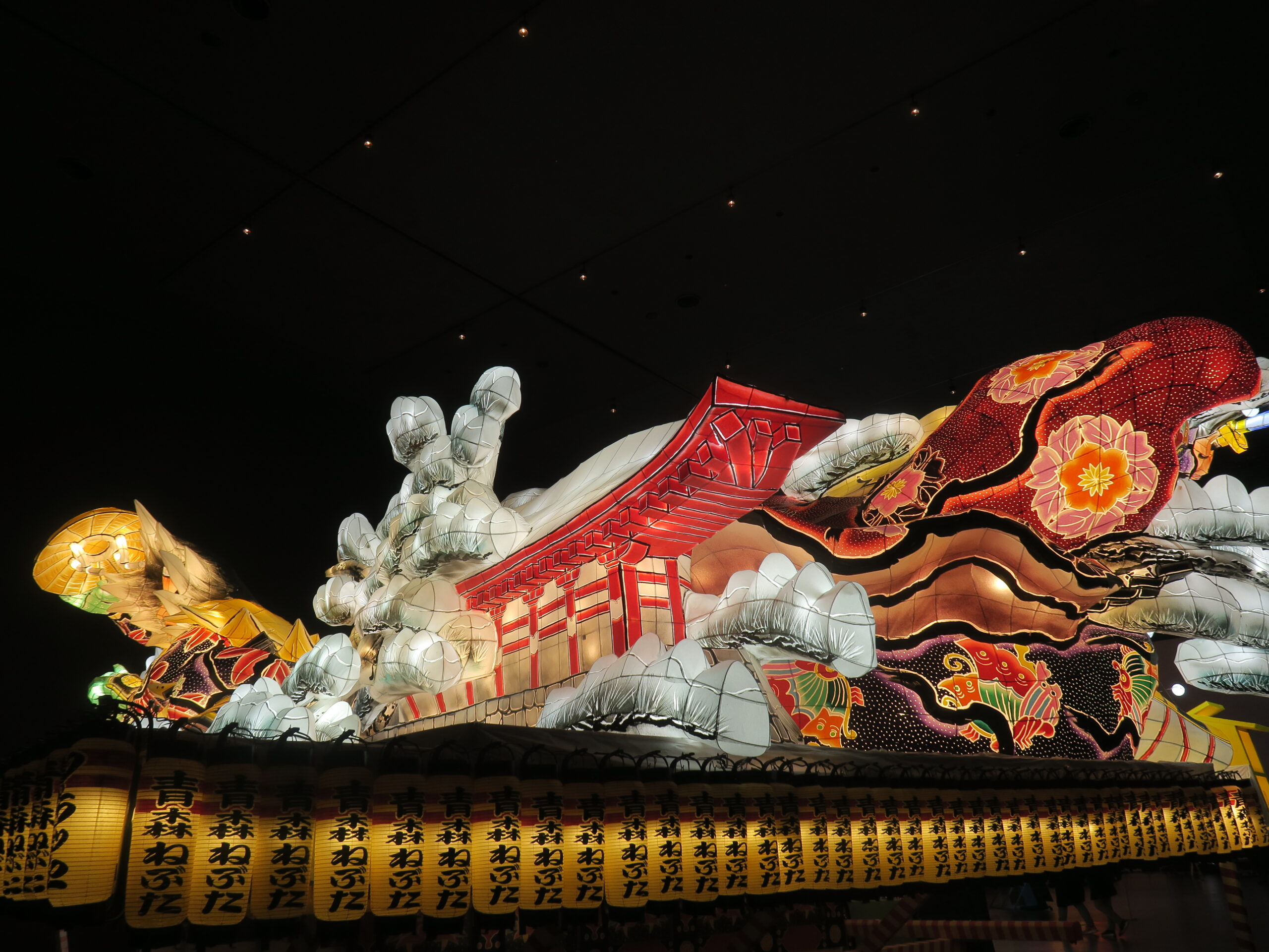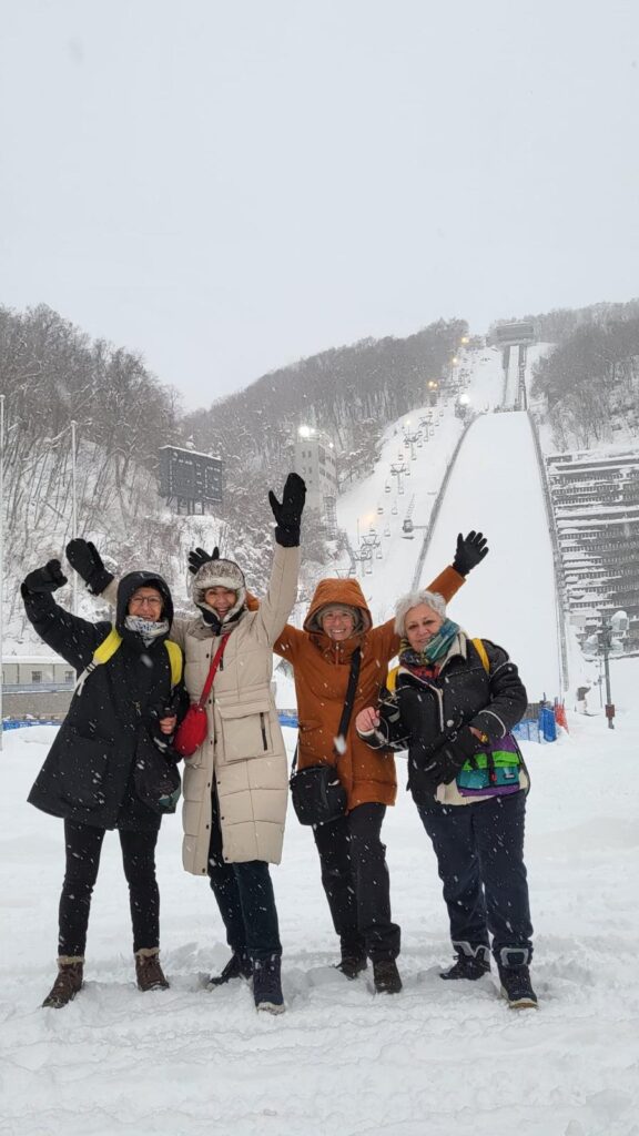 il y a eu des lacs aux cygnes blancs , des fumerolles de soufre dans la neige, des grues qui se confondent sur les champs immaculés de Kushiro, des chars lumineux qui réveillent le jour gris d’Aomori, des musées qui font revivre les peuples premiers Ainou et les artistes (Munakata à Aomori et la fresque de Foujita à Akita), des traditions antiques avec les namahage dans la péninsule d’Oga … des onsen dans la neige et des repas hauts en saveurs …