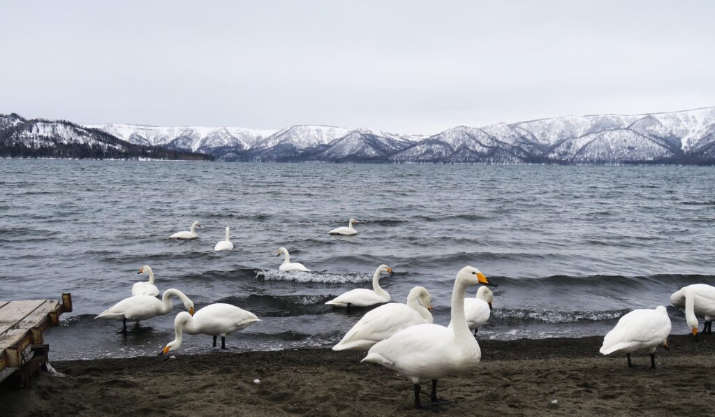 et cygnes chanteurs au lac Kussharo,